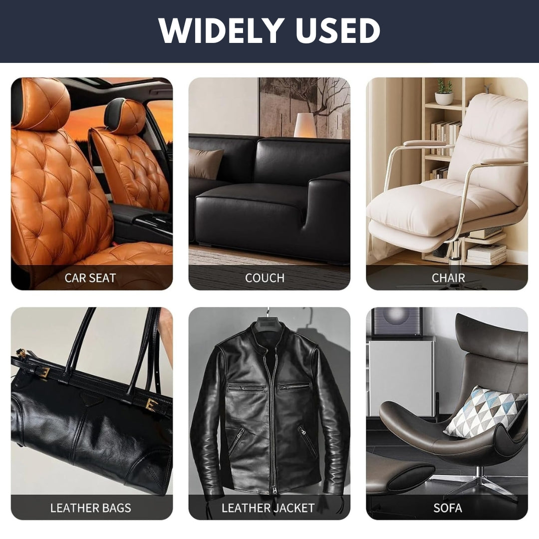 Perfect for sofas, car seats, recliners, handbags, boots, leather jackets, belts, luggage, and more.